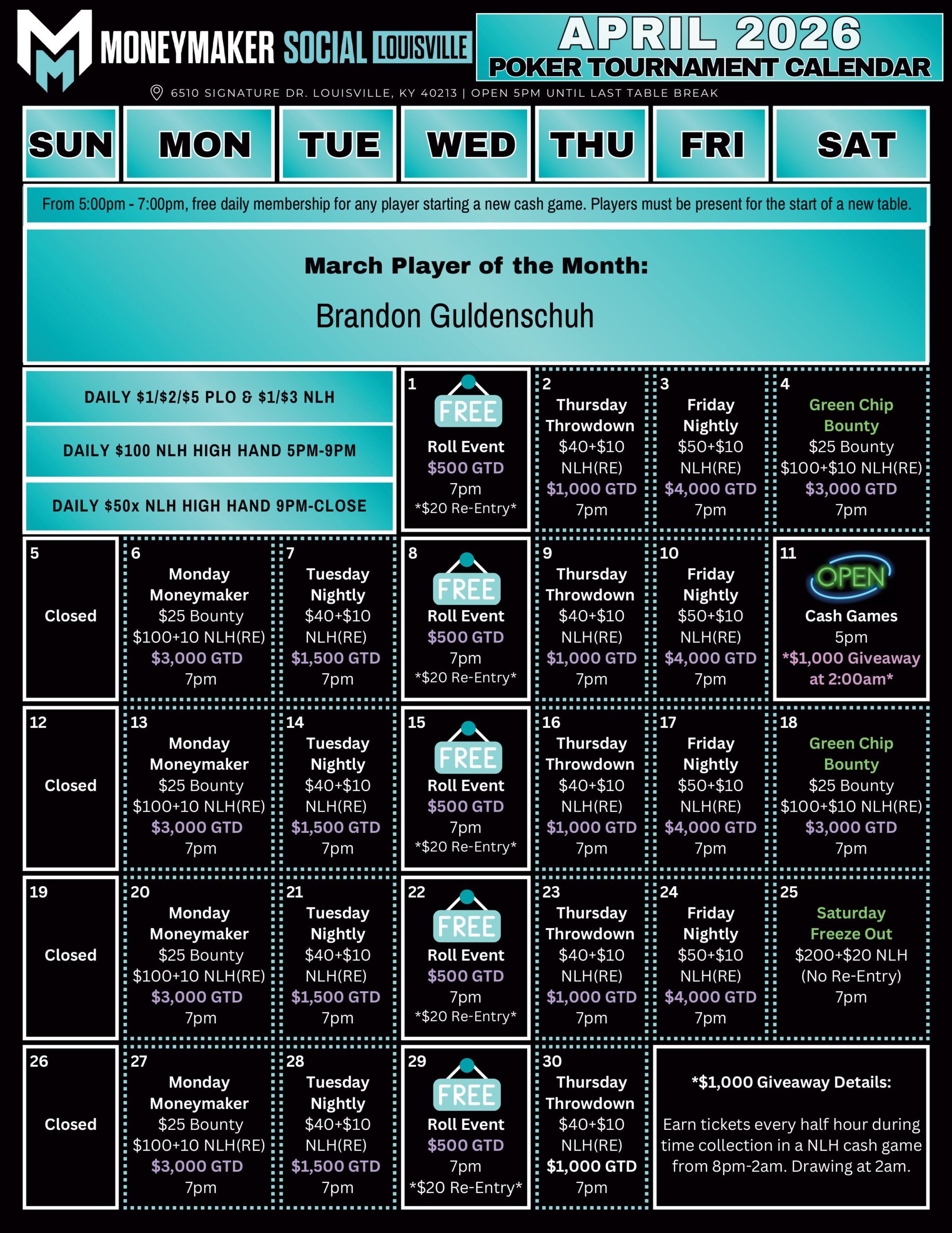 The upcoming Moneymaker Main Event will take place at The Casino Aruba, and feature a guaranteed prize pool of $200,000 Daytona Beach, FL – April 29,